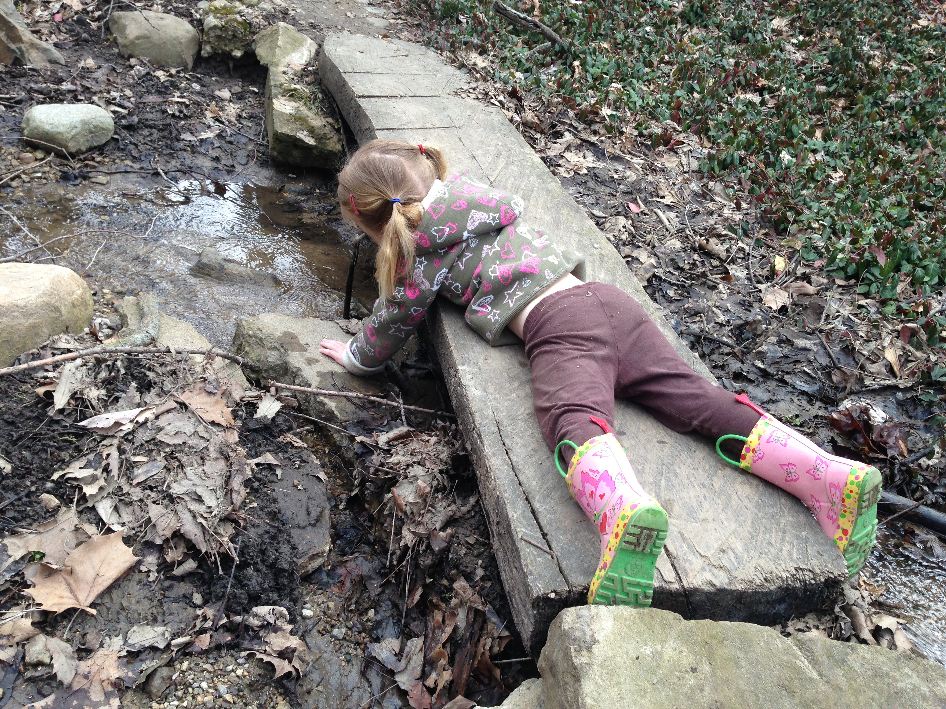 If I can get her interested, we go hiking. We’ve gone hiking at several different parks, and I just can’t get enough of watching her explore…she runs ahead, kicks leaves, finds the perfect stick, wades in whatever creek she can find, and always favors the most difficult trails.